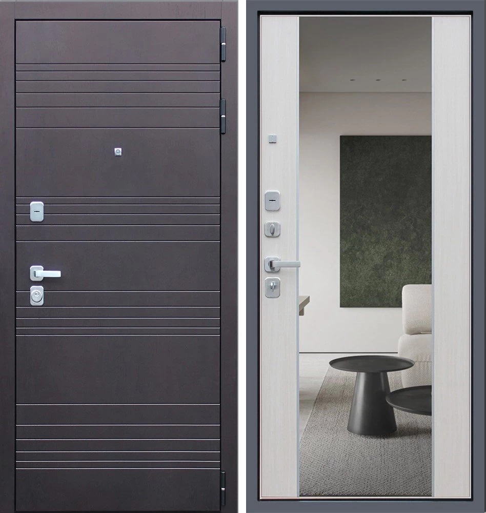 Надежная входная Дверь Дуэт с зеркалом премиум класса по цене 46 697 руб. Большая толщина стали защитит от проникновения в ваш дом, квартиру или коттедж. Используется очень качественная фурнитура: замки, цилиндры, ручки, защелки. Покрытие и отделка двери изготовлено под внимательным контролем производителя. Дверь имеет долгий срок службы и гарантию.